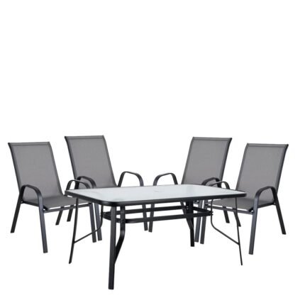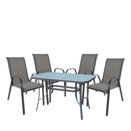 Σετ Τραπεζαρία Κήπου Io Αλουμίνιο Ασημί Με 2 Πολυθρόνες