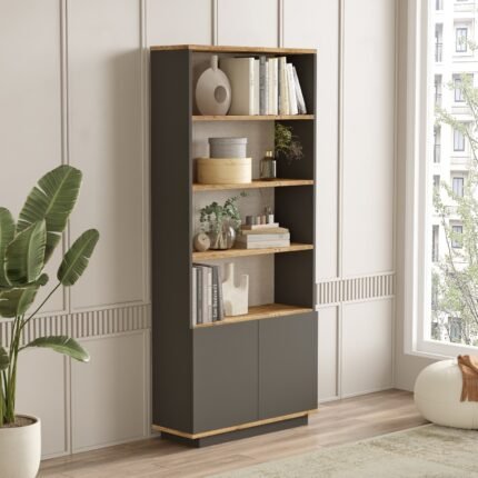 Βιβλιοθήκη ArteLibre CLACK Πεύκο/Ανθρακί Μοριοσανίδα/Μελαμίνη 75.1×26.8×168.3cm
