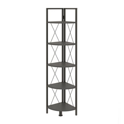 Βιβλιοθήκη γωνιακή Kelsie Megapap χρώμα μαύρο – ανθρακί 33x33x162εκ.