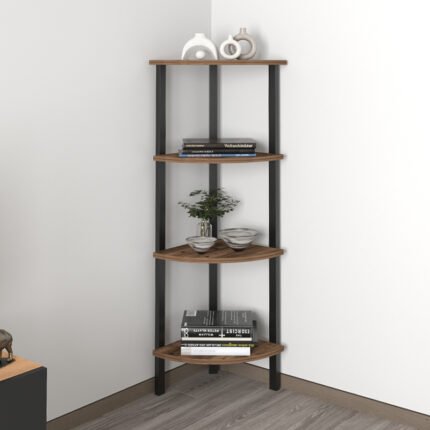 Βιβλιοθήκη γωνιακή Lela Megapap χρώμα μαύρο – καπνιστή καρυδιά 34x34x125εκ.