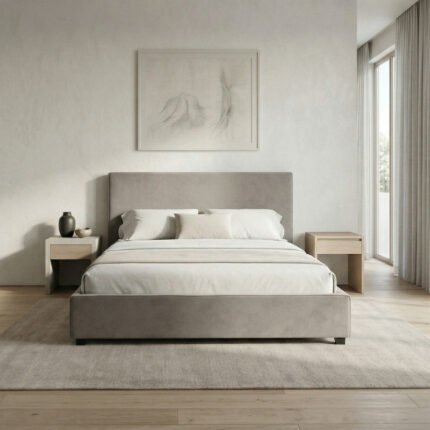 Κρεβάτι Nival Megapap υφασμάτινο με αποθηκευτικό χώρο χρώμα μπεζ 160×200εκ.
