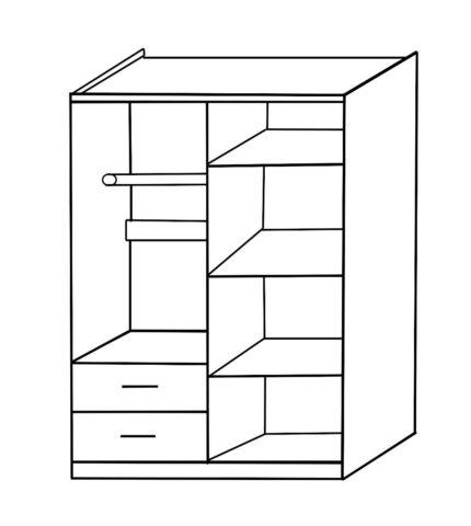- Διαθέτει δύο συρτάρτια και εσωτερικά τρία ράφια παρέχοντας άπλετο χώρο για την αποθήκευση ρουχισμού και λευκών ειδών