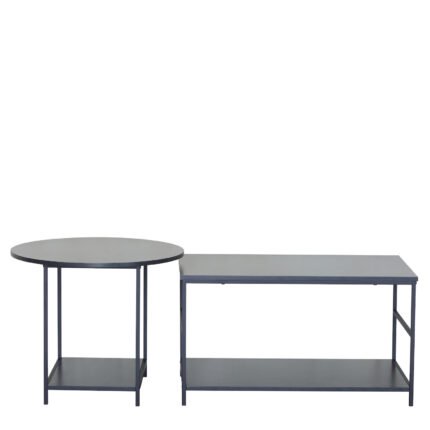Τραπεζάκι Σαλονιού ArteLibre ROWDEN Μαύρο Μάρμαρο Μοριοσανίδα/Μέταλλο 60x60x50/80x47x45cm Σετ 2Τμχ