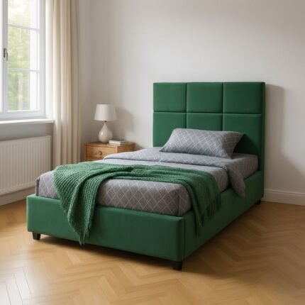 Κρεβάτι Kingston Megapap βελούδινο με αποθηκευτικό χώρο χρώμα κυπαρισσί 100×200εκ.