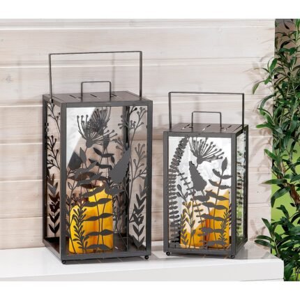 Φανάρι ArteLibre Με Διακόσμηση Λουλούδια Μαύρο Μέταλλο/Γυαλί 25x25x48cm