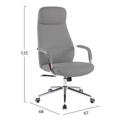 ΚΑΡΕΚΛΑ ΓΡΑΦΕΙΟΥ MEITE HM18353.10 ΓΚΡΙ PU ΔΕΡΜΑ–ΒΑΣΗ ΧΡΩΜΙΟΥ 66x71x127Υεκ