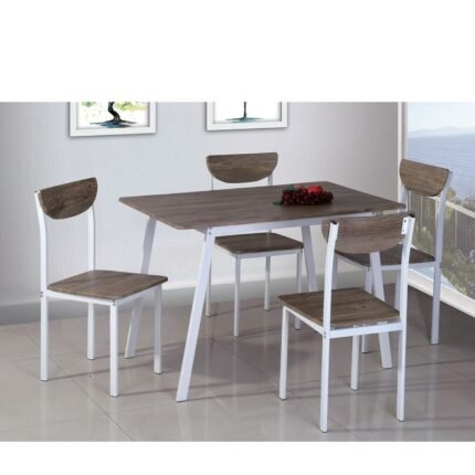 Τραπέζι Σετ (4+1) LINDERIA Λευκό/Καφέ