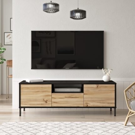 Έπιπλο Τηλεόρασης ArteLibre ARGYLL Φυσικό/Μαύρο Μοριοσανίδα/Μέταλλο 140×35.5×46.4cm