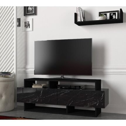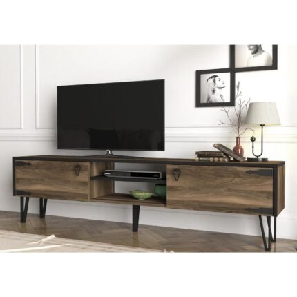 Σύνθετο έπιπλο τηλεόρασης SKOPELOS Καρυδιά/Μαύρο 160x30x40cm