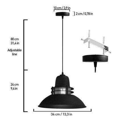 Φωτιστικό Κρεμαστό ArteLibre ALEV Μαύρο Μέταλλο 34x34x80cm