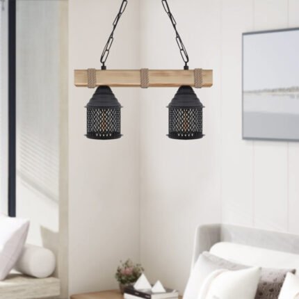Φωτιστικό οροφής Elora Megapap E27 ξύλινο – μεταλλικό δίφωτο χρώμα φυσικό – μαύρο 40x13x75εκ.