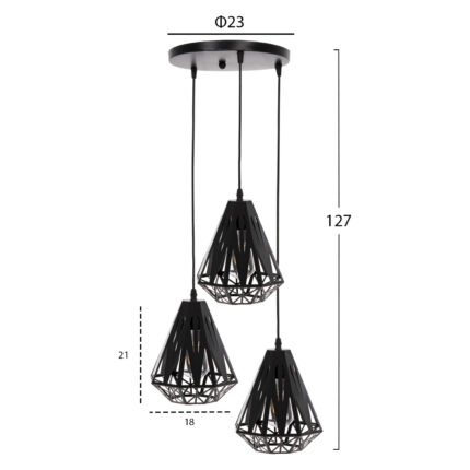ΦΩΤΙΣΤΙΚΟ ΟΡΟΦΗΣ ΚΡΕΜΑΣΤΟ HM4083 3 "ΦΑΝΑΡΑΚΙΑ" ΜΑΥΡΟ ΜΕΤΑΛΛΟ Φ23x127Yεκ.