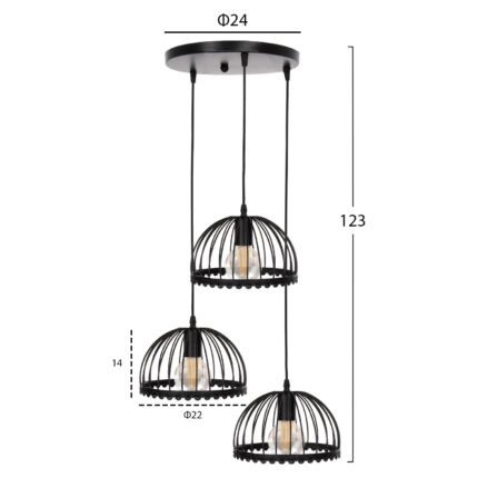 ΦΩΤΙΣΤΙΚΟ ΟΡΟΦΗΣ ΚΡΕΜΑΣΤΟ HM4086 3ΦΩΤΟ ΜΑΥΡΕΣ ΜΕΤΑΛΛΛΙΚΕΣ ΟΜΠΡΕΛΕΣ Φ22x123Υεκ.