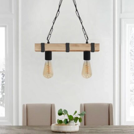 Φωτιστικό οροφής Vero Megapap E27 ξύλινο δίφωτο χρώμα φυσικό – μαύρο 40x8x65εκ.