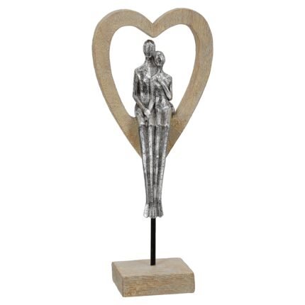 Γλυπτό Καρδιά ‘Aroha’ Ζευγάρι Μοτίβο Πολυρεζίνη Καφέ/Ασημί 7×14.5x34cm