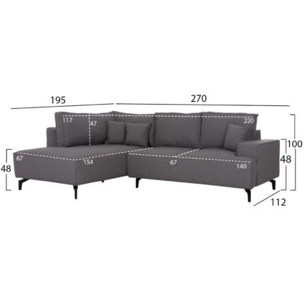 ΓΩΝΙΑΚΟΣ ΚΑΝΑΠΕΣ-ΚΡΕΒΑΤΙ ΜΕ ΑΠΟΘ.ΧΩΡΟ SAFFIRA HM3303.01L ΓΚΡΙ ΥΦΑΣΜΑ 270x195x100Υεκ.