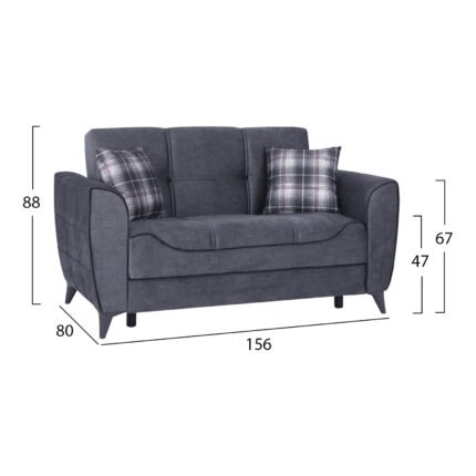 ΚΑΝΑΠΕΣ 2ΘΕΣΙΟΣ JUANA HM3166.20 ΓΚΡΙ ΜΕ ΣΚΟΥΡΟ ΓΚΡΙ ΡΕΛΙ 156x80x88 εκ.