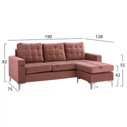 ΚΑΝΑΠΕΣ ΓΩΝΙΑ ΑΝΑΣΤΡΕΨΙΜΗ SANTINO HM3152.12 ΒΕΛΟΥΔΟ ΣΑΠΙΟ ΜΗΛΟ 190×75-128×82Υ εκ.