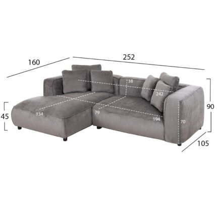 ΚΑΝΑΠΕΣ ΓΩΝΙΑ (ΑΡΙΣΤΕΡΗ) 3-ΘΕΣΙΟΣ GRACE HM3280.03L ΓΚΡΙ ΥΦΑΣΜΑ 252x160x70-90Υεκ