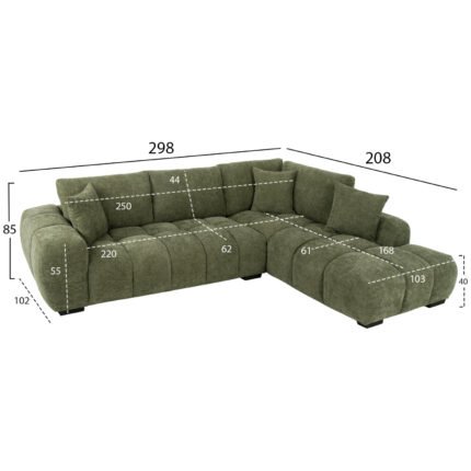 ΚΑΝΑΠΕΣ ΓΩΝΙΑ (ΔΕΞΙΑ) COVEN HM3266.14R ΠΡΑΣΙΝΟ ΥΦΑΣΜΑ 298x102-208x85Υεκ.