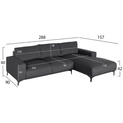 ΚΑΝΑΠΕΣ ΓΩΝΙΑ (ΔΕΞΙΑ) NOA HM3278.02R ΑΝΘΡΑΚΙ ΥΦΑΣΜΑ 288x90-157x67-80Υεκ.