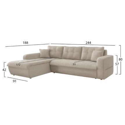 ΚΑΝΑΠΕΣ ΚΡΕΒΑΤΙ ΑΡΙΣΤΕΡΗ ΓΩΝΙΑ KANSO HM3338.03L ΜΠΕΖ ΥΦΑΣΜΑ 244x188x80Υεκ