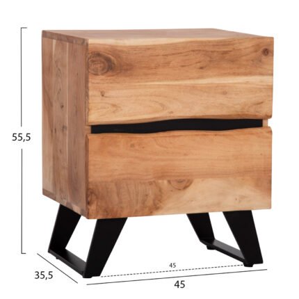 ΚΟΜΟΔΙΝΟ ALICIA ΜΕ 2 ΣΥΡΤΑΡΙΑ HM8360.11 ΑΠΟ ΜΑΣΙΦ ΞΥΛΟ ΑΚΑΚΙΑΣ 45x35x56Yεκ.