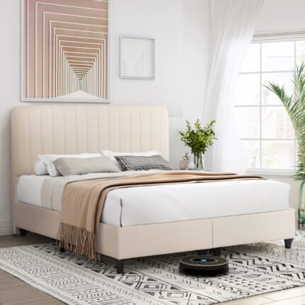 ΚΡEΒΑΤΙ ΔΙΠΛΟ LUTHER HM717 ΜΠΕΖ ΥΦΑΣΜΑ ΓΙΑ ΣΤΡΩΜΑ 160×200εκ.