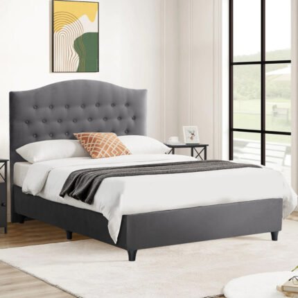 ΚΡΕΒΑΤΙ MALENA ΑΠΟ ΓΚΡΙ ΒΕΛΟΥΔΟ HM647.10 ΓΙΑ ΣΤΡΩΜΑ 120×200 εκ.