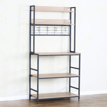 Ραφιέρα Κουζίνας ArteLibre INVERMERE Δρυς/Μαύρο Μοριοσανίδα/Μέταλλο 80x40x170cm
