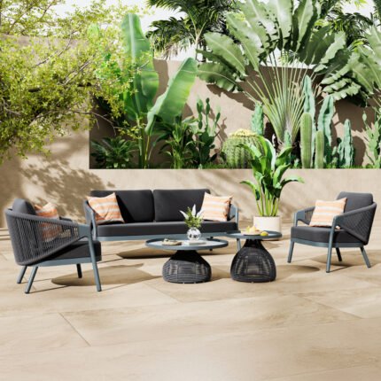 ΣΕΤ ΣΑΛΟΝΙ 5ΤΜΧ DRISCOLL ΗM6473.01 ΣΚΟΥΡΟ ΓΚΡΙ ΑΛΟΥΜΙΝΙΟ-ΣΧΟΙΝΙ-OLEFIN ΥΦΑΣΜΑ