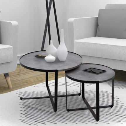 Σετ τραπεζάκια σαλονιού Davis Megapap 2τμχ. χρώμα γκρι σκυροδέματος 70x69x46εκ.