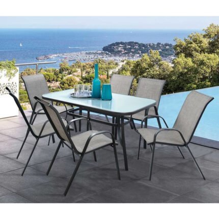 ΣΕΤ ΤΡΑΠΕΖΑΡΙΑ 7ΤΜΧ 1 ΤΡΑΠΕΖΙ 150Χ90+6ΚΑΡΕΚΛΕΣ ΓΚΡΙ HM5119.01