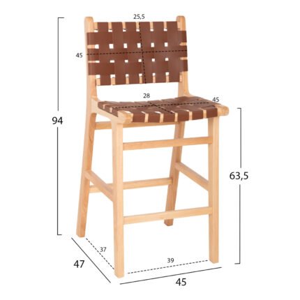 ΣΚΑΜΠΟ ΜΕΣΑΙΟΥ ΥΨΟΥΣ FELIPE TOON ΞΥΛΟ HM9329.01 ΦΥΣΙΚΟ ΚΑΦΕ PU 45x47x94Yεκ.