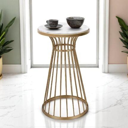 Τραπεζάκι βοηθητικό Tekosi Megapap μεταλλικό – Mdf χρώμα χρυσό – λευκό εφέ μαρμάρου 35x35x58εκ.