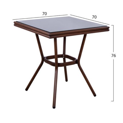 ΤΡΑΠΕΖΙ ΑΛΟΥΜΙΝΙΟΥ HARLOW 70X70X76Υ ΜΕ ΟΨΗ BAMBOO HM5568.03 ΚΑΦΕ ΜΕ ΓΥΑΛΙ