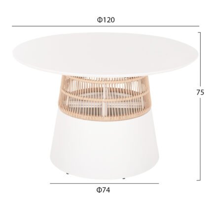 ΤΡΑΠΕΖΙ ΣΤΡΟΓΓΥΛΟ SAEID HM6106.02 ΛΕΥΚΟ ΑΛΟΥΜΙΝΙΟ-ΜΠΕΖ ΣΧΟΙΝΙ Φ120×75Υεκ.