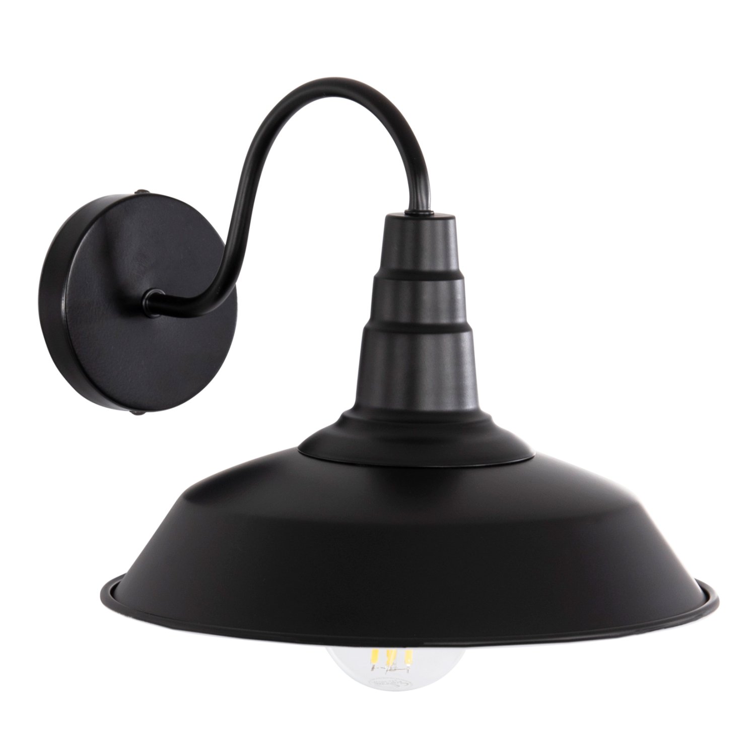 Η απλίκα τοίχου DONO είναι μια όμορφη πρόταση σε industrial στυλ, με ΜΑΥΡΗ μεταλλική βάση και καπέλο, ενώ ο βραχίονας είναι κομψός με καμπύλη.
