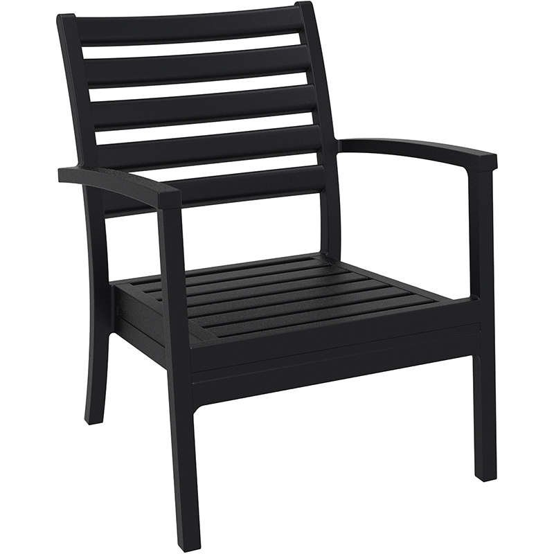 Artemis XL πολυθρόνα του οίκου Siesta σε χρώμα black, κατασκευασμένη από πολυπροπυλένιο με 20% fiber glass για απόλυτη αντοχή στο χρόνο. Κατάλληλη για εσωτερική και εξωτερική χρήση, στοιβαζόμενη, ιδανική επιλογή για επαγγελματικούς χώρους. Πιστοποιημένο προϊόν από τον Ιταλικό οίκο CATAS.
