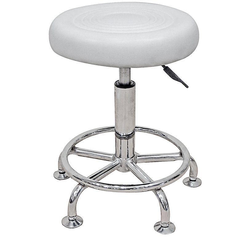 Bar71 σκαμπό επενδυμένο με PU σε χρώμα λευκό. Διαθέτει πέλματα για σταθερότητα, καθώς και αμορτισέρ ρύθμισης ύψους, επιτρέποντάς σας να προσαρμόζετε το κάθισμα ανάλογα με τις ανάγκες του χώρου και της εργασίας σας. Η βάση και το υποπόδιο από χρώμιο εξασφαλίζουν σταθερότητα και στήριξη. Είναι σχεδιασμένο για άνεση, εργονομία και ανθεκτικότητα, ιδανικό για πολύωρη χρήση σε σχεδιαστήρια και ταμεία.