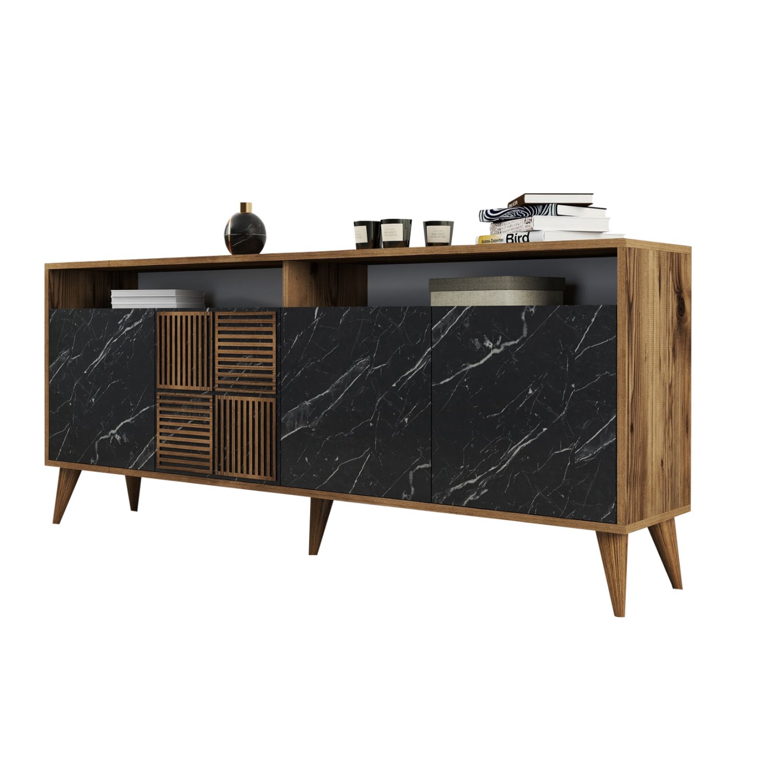 ΜΠΟΥΦΕΣ ΜΕΛΑΜΙΝΗΣ ΚΑΡΥΔΙ ΜΕ ΟΨΗ ΜΑΥΡΟΥ ΜΑΡΜΑΡΟΥ HM9431.05 180x35x78.6Υ εκ.