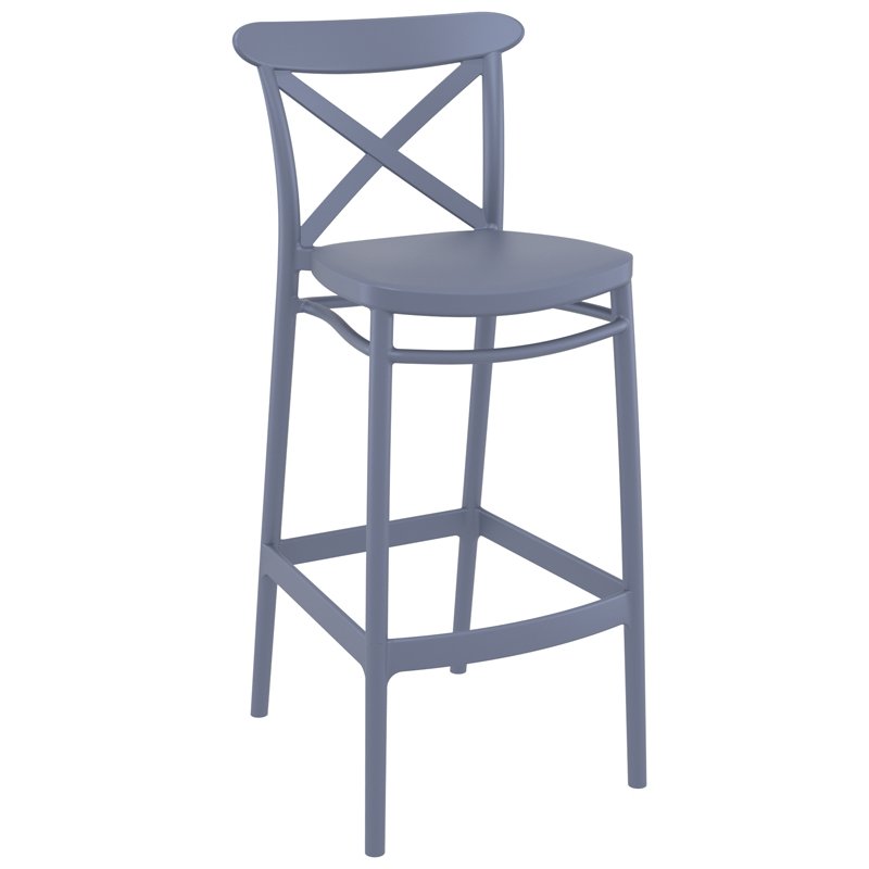 Cross σκαμπό 75cm του οίκου Siesta σε χρώμα dark grey, με μοντέρνο σχεδιασμό και άνετο κάθισμα. Κατασκευασμένο από πολυπροπυλένιο με 20% fiber glass για απόλυτη αντοχή στον χρόνο. Κατάλληλο για εσωτερική και εξωτερική χρήση,ιδανική επιλογή για επαγγελματικούς χώρους. Πιστοποιημένο προϊόν από τον Ιταλικό οίκο CATAS.