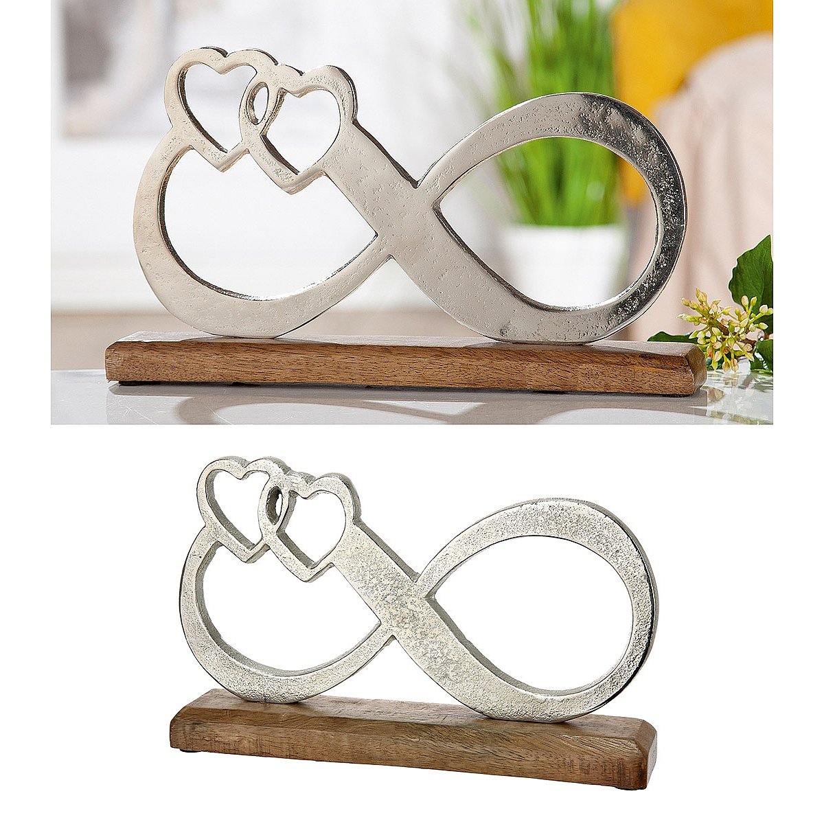 Διακοσμητικό άπειρο σε βάση ασημί/φυσικό αλουμίνιο/ξύλο 5×32.5x19cm.
