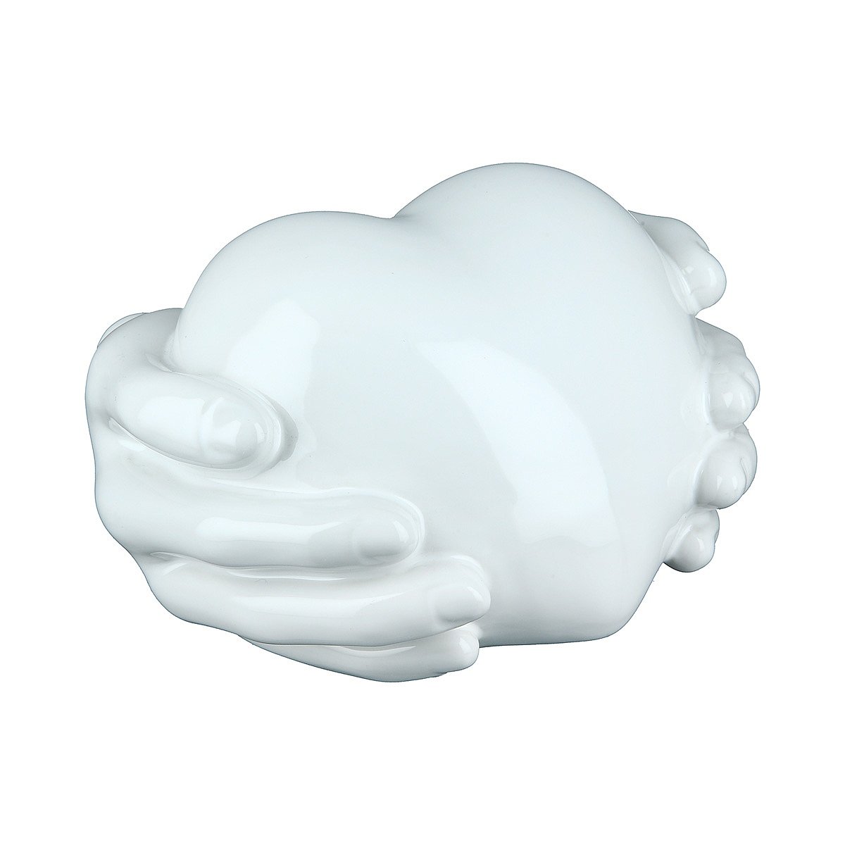 Διακοσμητικό χέρια κρατούν καρδιά γυαλιστερό λευκό κεραμικό 17x18x10cm.