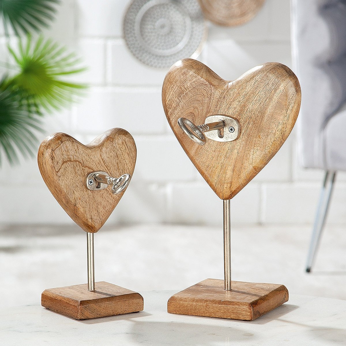 Διακοσμητικό καρδιά με κλειδαριά σε βάση φυσικό/ασημί ξύλο/αλουμίνιο 15x15x24cm.