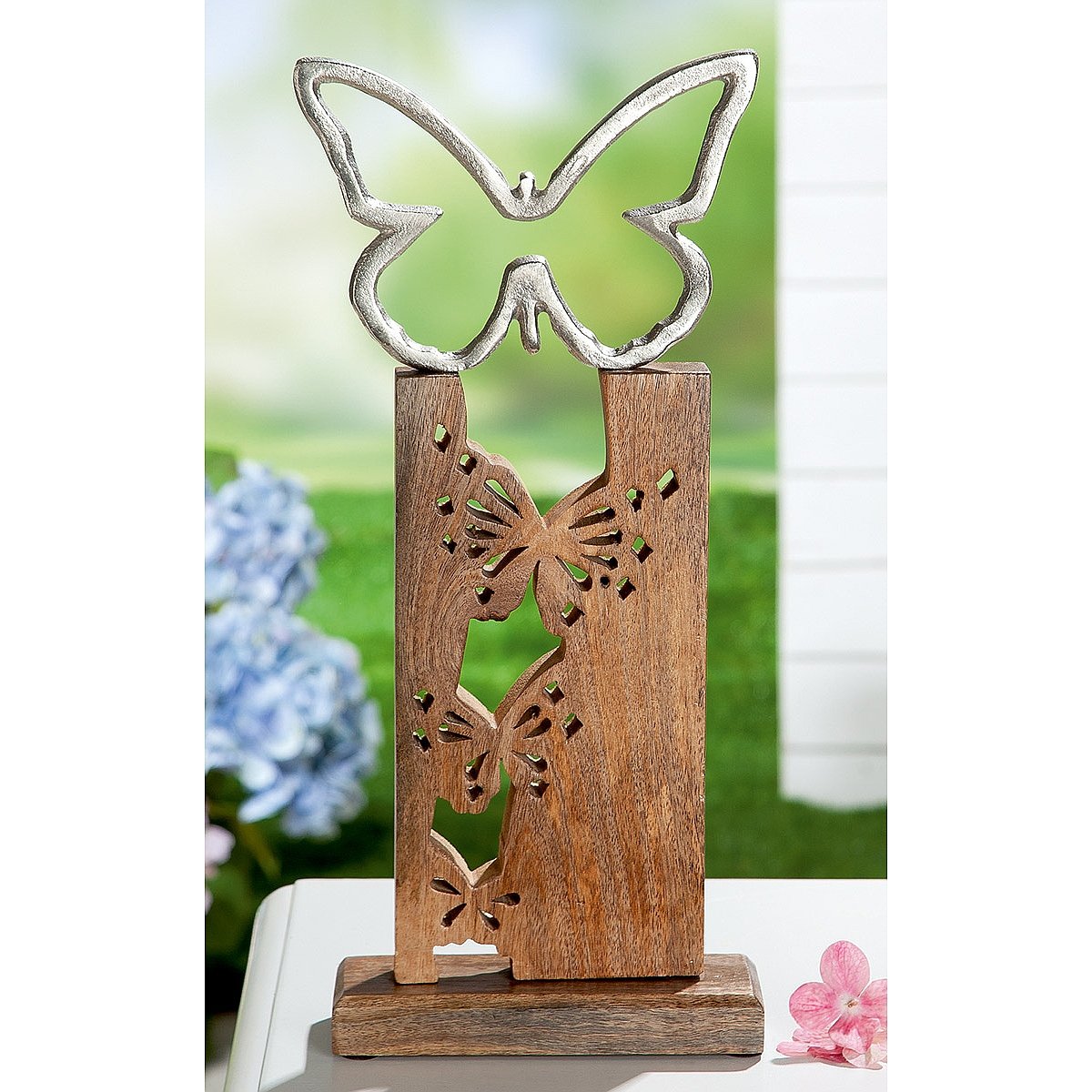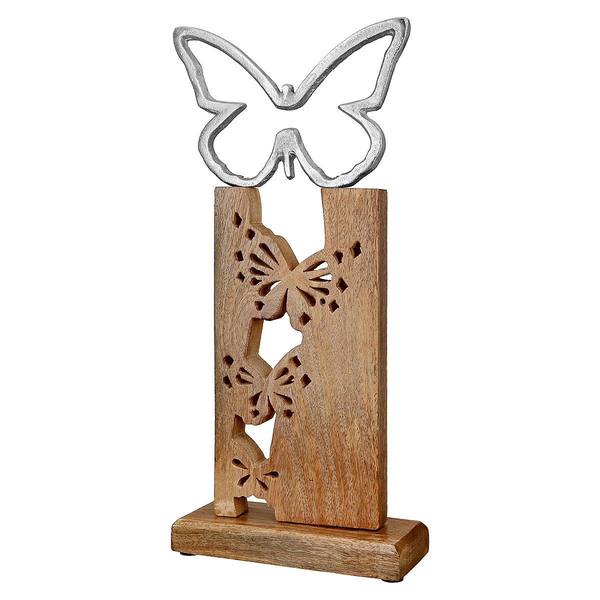 Διακοσμητικό πεταλούδα σε βάση ασημί/καφέ ξύλο/αλουμίνιο 7.5x19x40.5cm.