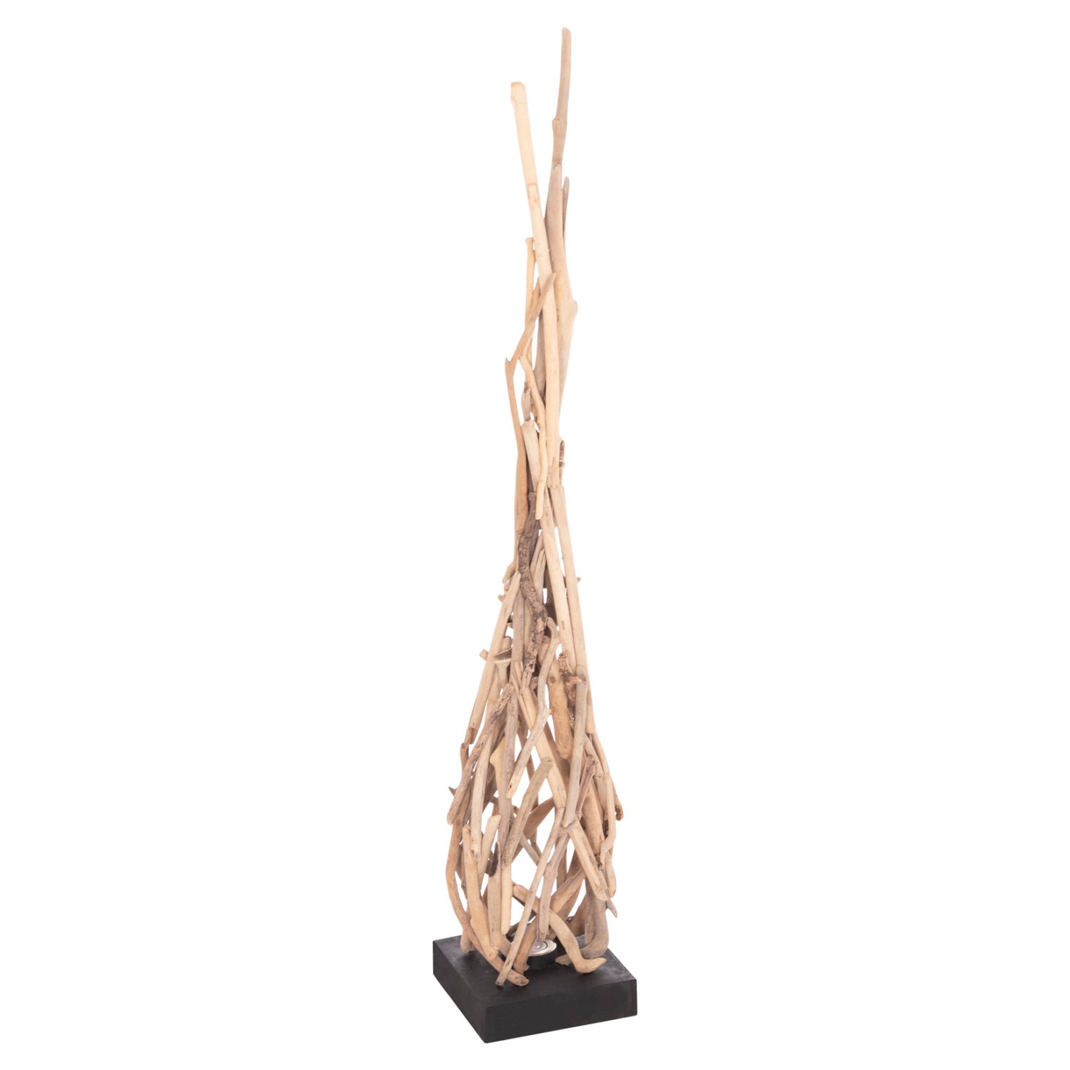 Το φωτιστικό έχει γίνει από driftwood. Πρόκειται για κομμάτια ξύλου που έχουν ξεβραστεί σε μια ακτή ή παραλία μιας θάλασσας, λίμνης ή ποταμού από τη δράση των ανέμων, της παλίρροιας ή των κυμάτων. Αυτά τα κομμάτια συλλέγονται, και υπόκεινται σε επεξεργασία προκειμένου να χρησιμοποιηθούν για διάφορους σκοπούς.