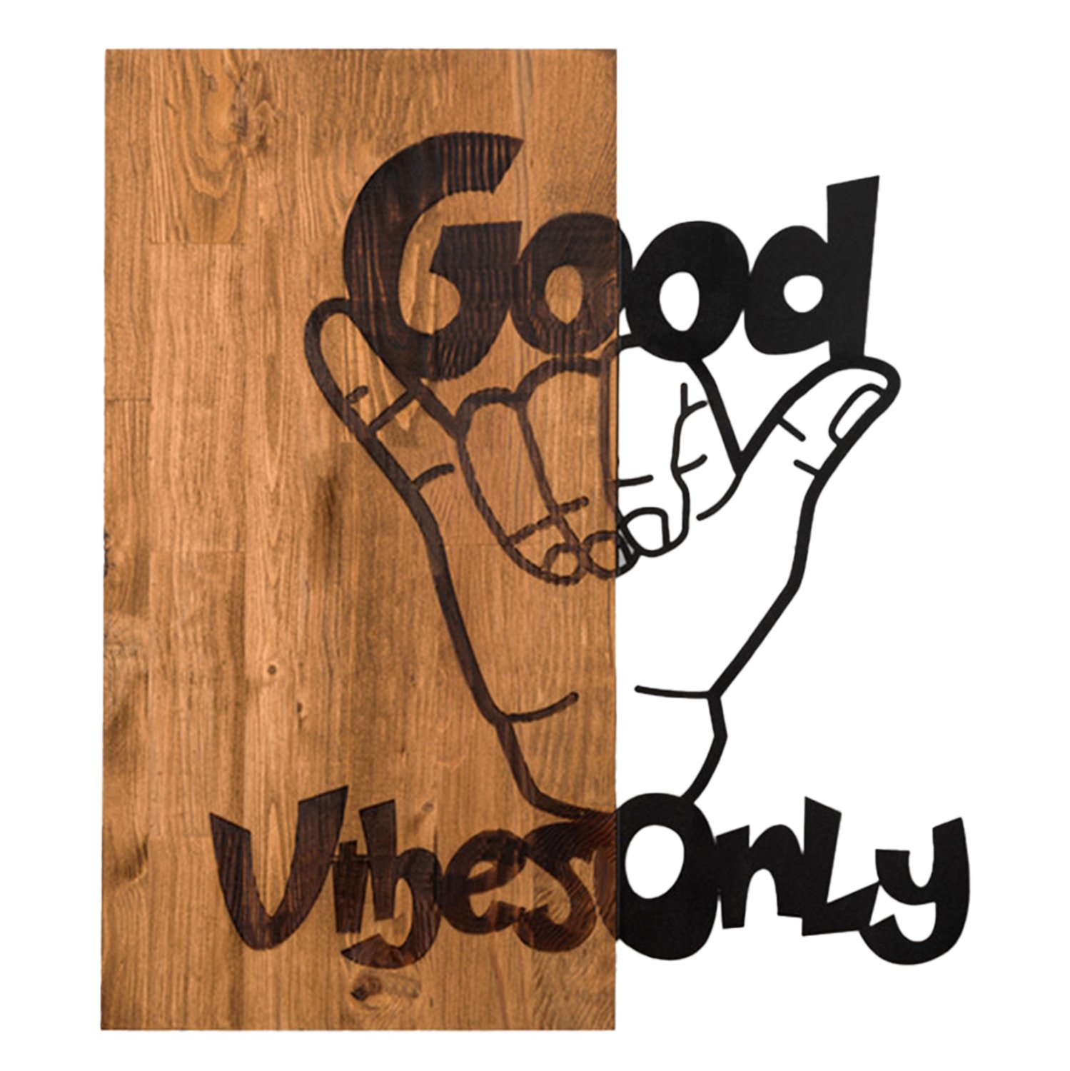 Θέλετε να τραβήξετε τα βλέμματα με κάτι όμορφο στον χώρο σας; Μην διστάσετε να διακοσμήσετε τον τοίχο σας με ένα κομμάτι wall art. Στο συγκεκριμένο το σλόγκαν είναι σκαλιστό στο ξύλινο μέρος του διακοσμητικού κατά το ήμισυ, ενώ το υπόλοιπο μέρος αποτελείται από ΜΑΥΡΟ μέταλλο! Μπορείτε όμως να φανταστείτε την χρησιμότητά τέτοιων διακοσμητικών;