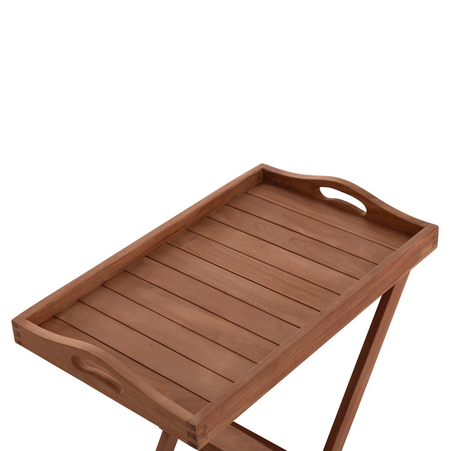 Ο δίσκος σερβιρίσματος BARNABY στηρίζεται σε μια πτυσσόμενη βάση, έτσι ώστε να μπορείτε να την μεταφέρετε εύκολα μεγιστοποιώντας την πρακτικότητα του! Το σετ είναι κατασκευασμένο εξολοκλήρου από ποιοτικό ξύλο Teak σε ΦΥΣΙΚΟ χρώμα, και θα αποτελέσει ένα «στολίδι» στην υπηρεσία σας! Ιδανικό για επαγγελματική χρήση σε εξωτερικούς χώρους, όπως μπαλκόνια και αίθρια, σε ξενοδοχεία, χώρους εστίασης κτλ.