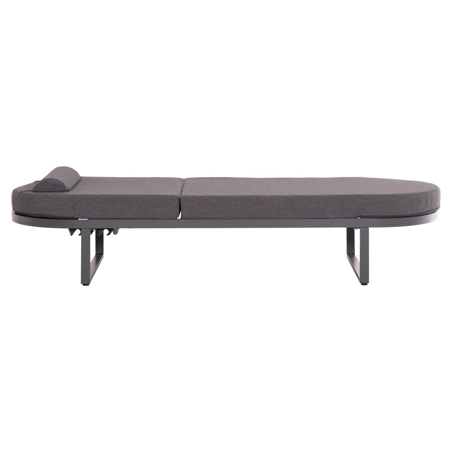 Η επαγγελματική ξαπλώστρα παραλίας MALLOW σε ΣΚΟΥΡΟ ΓΚΡΙ χρώμα είναι στιβαρή και πολυτελής. Είναι κατασκευασμένη από αλουμίνιο και γαλβανιζέ μέταλλο στο εσωτερικό του σκελετού για έξτρα ανθεκτικότητα, και διαθέτει ψηλό μαξιλάρι(στρώμα) με προσκέφαλο σε ΣΚΟΥΡΟ ΓΚΡΙ χρώμα. Σχεδιαστικά οι «γραμμές» της είναι ξεκάθαρες σε ΟΒΑΛ υλοποίηση. Η σκαλιέρα έχει 5 επίπεδα (μαζί με την flat).